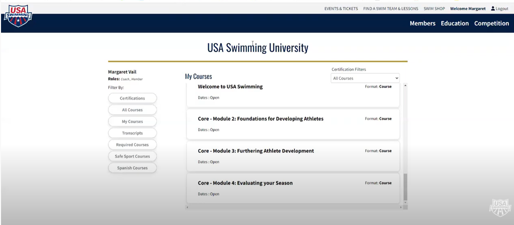 USA Swimming members can click on the buttons below to access the courses through the USA Swimming University.