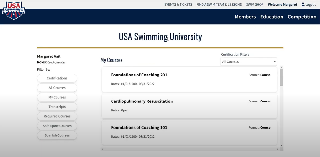 Browse educational offerings for USA Swimming members and non-members.